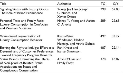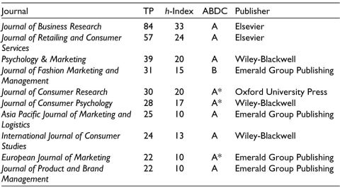 Table 3. Top 10 Leading Journals Publishing on Luxury Consumption Behavior.