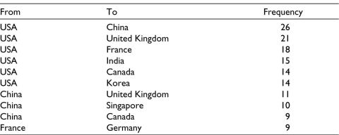 Examining the affiliations data reveals that the contributing organizations and institutions are spread worldwide, with a concentrated presence in countries such as the United States, China, the United Kingdom, India, and France. In Figure 6, a comprehensive overview is provided, showcasing the critical countries linked to authors engaged in the study of luxury consumption. Notably, the United States takes the lead as the foremost contributor, generating a substantial number of 619 articles. This is followed by China, which contributed significantly to 250 articles, signifying a notable scholarly involvement. Moreover, the United Kingdom has established itself as a noteworthy participant in this field, producing 210 articles contributing to the luxury consumption discourse. Additionally, India stands out with its scholarly contributions, having generated 147 articles that explore various facets of luxury consumption. This collective body of work highlights the global engagement and diverse perspectives that enrich the discourse around luxury consumption. Furthermore, Table 6 presents the leading 10 instances of international collaboration concerning behaviors related to luxury consumption.