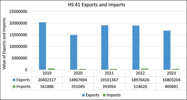 Figure 4. India’s Export–Import Trends in HS 41 (Luxury Leather Goods).
