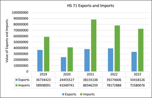 Figure 8.India’s Export–Import Trends in HS 71 (Luxury Jewellery).