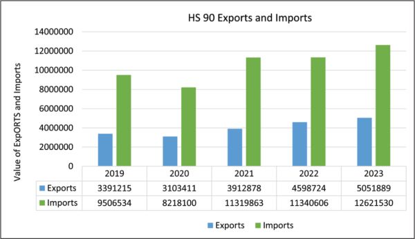 Figure 9.India’s Export–Import Trends in HS 90 (Luxury Eyewear).