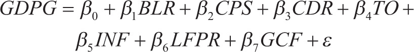 The econometric model for this study is formulated as follows to analyse the role of bank lending in driving economic growth in Sri Lanka: