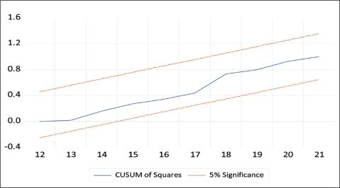Figure 3. Plot of Cumulative Sum of Squares of Recursive Residuals.