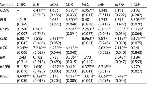 CDR and INF exhibit mutual bidirectional causality, reflecting the interplay between monetary conditions and credit allocation. Trade openness has bidirectional relationships with GDPG, credit to the private sector, CDR, and labour force participation rate, but is unidirectionally affected by INF. Labour force participation rate shows bidirectional links with trade openness, INF, and gross capital formation but unidirectionally influences GDPG. Gross capital formation is unidirectionally influenced by BLR and trade openness, unidirectionally affects credit to the private sector, and shares a bidirectional relationship with labour force participation rate. These results underscore the complex feedback mechanisms between financial, trade, labour, and macroeconomic variables in shaping Sri Lanka’s economic dynamics.