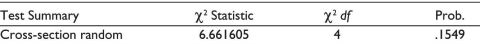 The secondary data extracted from the annual report and moneycontrol.com are the basis of the study to know the significant impact of other financial parameters on the profitability of automobile companies after the enactment of the Companies Act 2013. Table 5 presents the results obtained from the panel data regression analysis. The random effect (REM) and fixed effect (FEM) of the panel data analysis are applied to express the effect of omitted variables. The analyses of the results from REM and FEM for the period of study are made, and the Hausman specification test at a significance level of 5% (α = 0.05) is applied to obtain the appropriate result for the study (see Table 6). The result has selected the random effect model for the study.