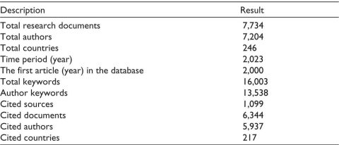 Included: The ultimate database of the study consisted of 7,734 studies. The aforementioned studies were taken into account for the purpose of conducting a citation analysis, with the aim of identifying the most influential authors, sources, organisations, and countries within this particular field of study.