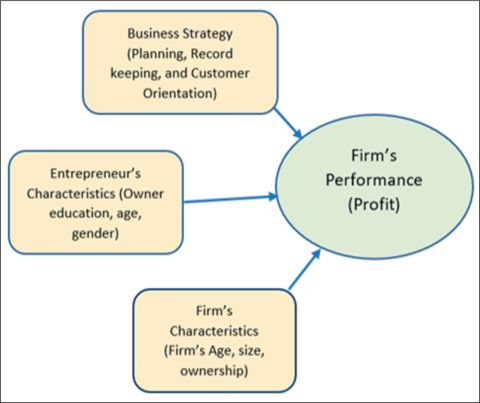 The preceding discussion underpins the conceptual framework for this analysis. Based on Storey’s (1994) model of three key determinants of firm success (Figure 3), the framework incorporates owner education as a moderating variable between business strategies and firm performance. Similar frameworks have been applied in prior studies (Khan et al., 2021).