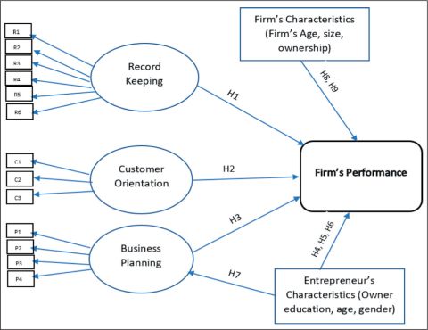 This study, by incorporating a broader set of variables beyond those identified in Storey’s framework, provides a more comprehensive understanding of the factors influencing firm performance. A notable methodological contribution lies in the application of a moderation model, which remains relatively underexplored in this context. Furthermore, the study disaggregates business strategy into three components—planning, customer orientation and record-keeping—and evaluates their distinct effects on firm performance, thereby contributing to addressing important gaps in the small business literature.